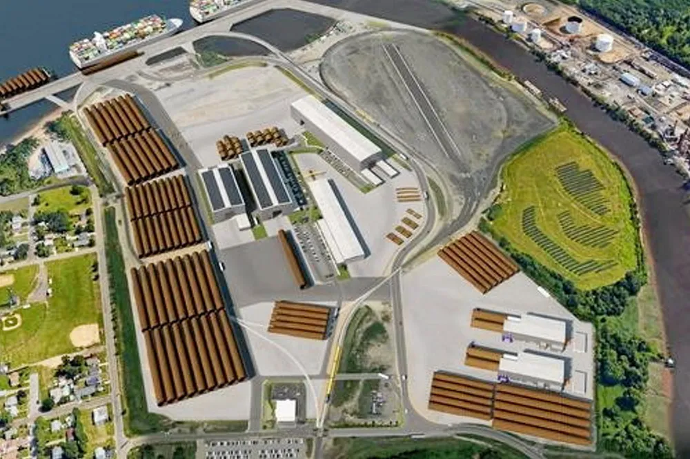 WindNew Jersey joins Orsted and EEW for 'largest US industrial offshore wind investment'Governor confirms plans for monopile plant that will serve state projects and wider US industryA rendering of the New Jersey monopile plant.Foto: State of New JerseyAndrew Lee