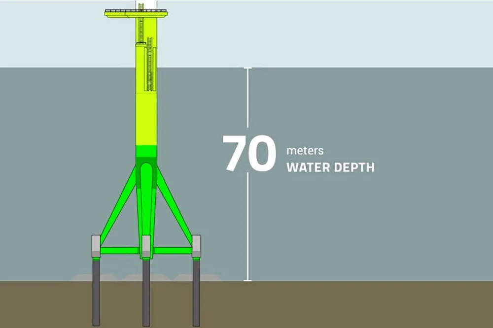 Contractors unveil new-model foundation structure designed for offshore depths of some 70 metres, historically beyond the reach of tradition monopiles and jackets