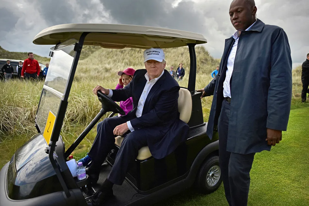 WindTrump must pay legal costs of Scottish offshore wind rowTrump International Golf ordered to pay Scottish government legal bill after Aberdeen Bay spatUS president Donald Trump, and his granddaughter Kai visit Trump International Golf Links in Aberdeen, Scotland.Foto: Jeff J Mitchell/Getty ImagesAndrew Lee